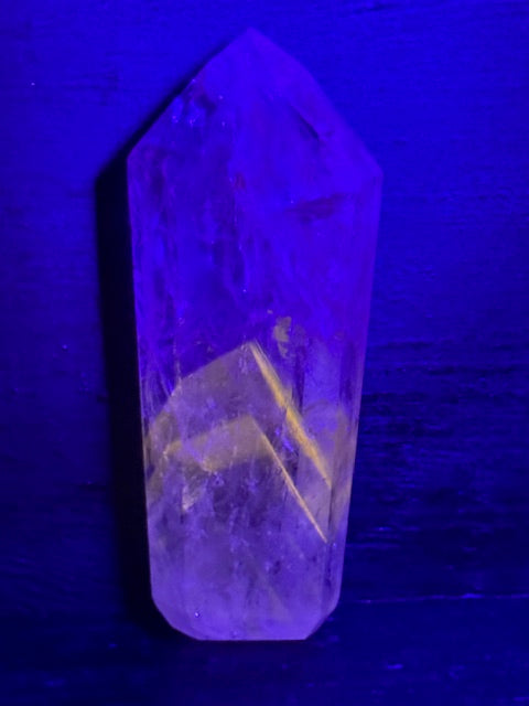 Ce qui rend cette améthyste véritablement unique est sa fluorescence sous lumière ultraviolette (UV). Sous cette lumière, le cristal s’illumine d’une aura captivante et vibrante, révélant une facette cachée de sa nature. Ce phénomène rare en fait une pierre recherchée par les passionnés de minéraux et les collectionneurs.