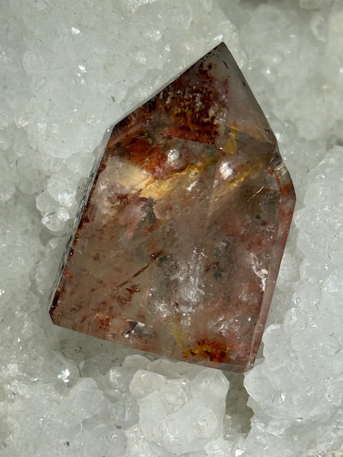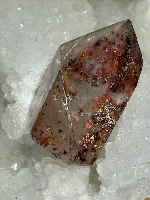 Comme toutes les améthystes, cette pierre appartient à la famille des quartz. Mais c’est l’hématite qui lui donne sa teinte rougeâtre et lui insuffle une énergie terrestre, renforçant ainsi son pouvoir d’ancrage. L’améthyste rouge agit comme un pont entre le spirituel et le physique, entre la sagesse intuitive et la vitalité incarnée. Elle aide à maintenir un équilibre entre l’élévation intérieure et la présence au monde.