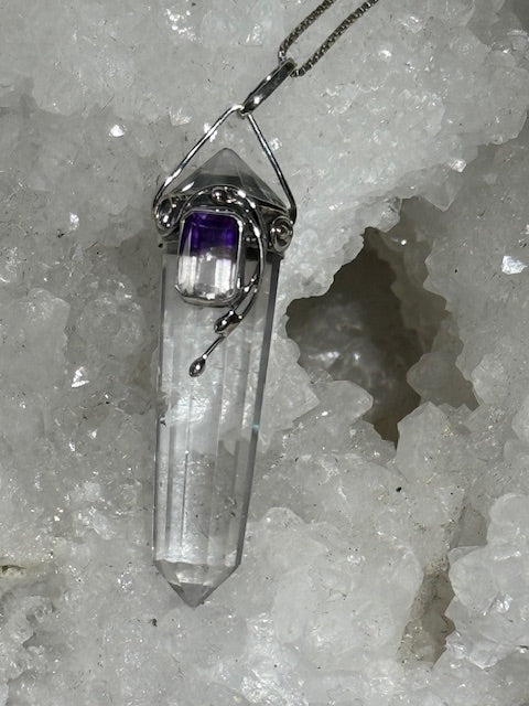 Ces pendentifs raffinés réunissent la puissance vibratoire du quartz Vogel, la noblesse de l’argent sterling, et la fréquence unique de trois pierres précieuses exceptionnelles : émeraude, amétrine ou Super Seven. Chaque pièce est bien plus qu’un bijou : c’est un outil énergétique sacré, façonné pour amplifier l’intention, favoriser l’alignement intérieur et élever le taux vibratoire.