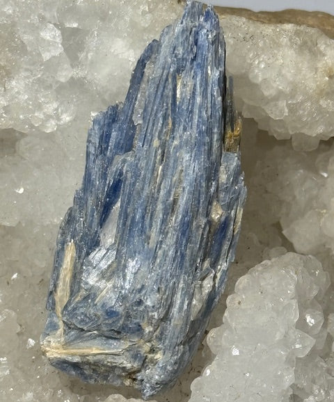 Naturellement vibrante, la cyanite bleue facilite l’alignement du corps, du mental et de l’esprit. Elle invite à dépasser les limitations du karma et à comprendre les liens entre les expériences présentes et les choix passés. Véritable pont entre les dimensions, elle soutient l’ascension spirituelle en ancrant les fréquences lumineuses dans la réalité terrestre.