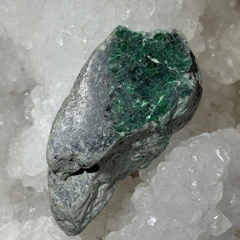 Visuellement, il charme par ses nuances de vert vif, parfois émaillées de veines noires ou d’inclusions sombres, évoquant la vitalité de la forêt tropicale et la puissance des forces terrestres. Mais au-delà de sa beauté, cette pierre vibre d’une énergie profonde, porteuse de transformation et d’harmonie intérieure.