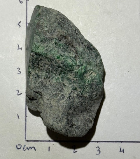 Composition : Roche composite (chromite, kosmochlor, chrome-jadéite, symplektite, chrome-amphibole, arfvedsonite)