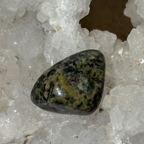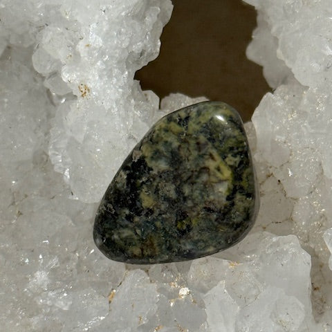 Véritable clé onirique, la dolérite de Stonehenge soutient la mémoire des rêves, leur compréhension symbolique et les voyages astraux. Elle permet d’explorer le monde subtil avec clarté et guidance, et d’en ramener des enseignements profonds.