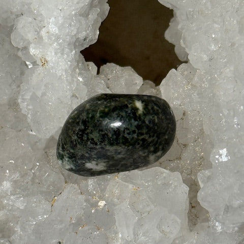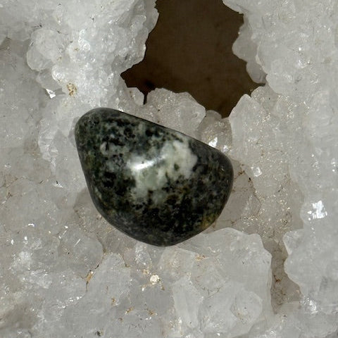 Véritable clé onirique, la dolérite de Stonehenge soutient la mémoire des rêves, leur compréhension symbolique et les voyages astraux. Elle permet d’explorer le monde subtil avec clarté et guidance, et d’en ramener des enseignements profonds.
