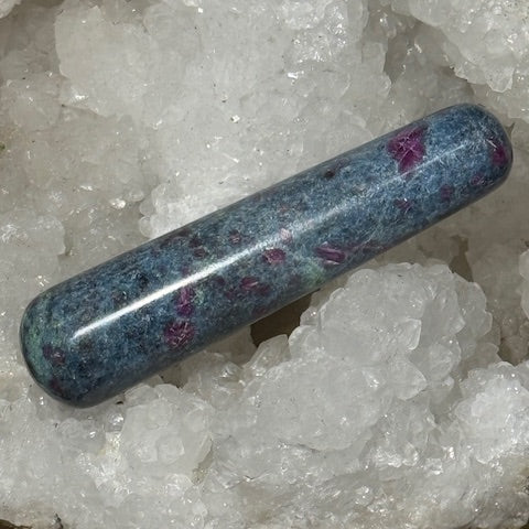 La combinaison cristalline du rubis et de la cyanite crée une synergie énergétique rare et puissante. Ensemble, ces deux minéraux soutiennent l’harmonisation du chakra racine, du chakra du cœur et du chakra de la gorge, tout en facilitant la connexion au troisième œil.
