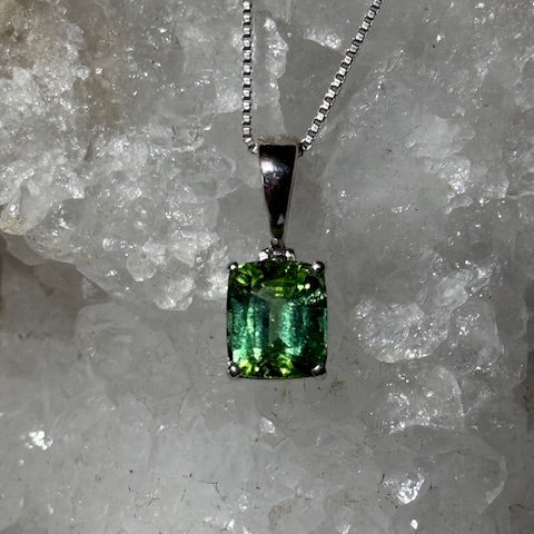 Pendentif Tourmaline Verte ( Verdélite) (Monture Argent)