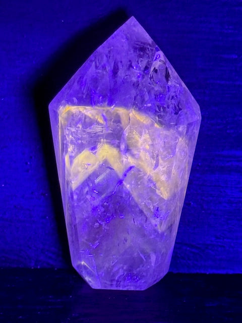 What makes this amethyst truly unique is its fluorescence under ultraviolet (UV) light. Under this light, the crystal lights up with a captivating and vibrant aura, revealing a hidden facet of its nature. This rare phenomenon makes it a sought-after stone for mineral enthusiasts and collectors.