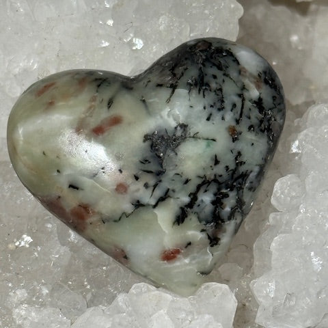 Green emerald powerfully influences the heart chakra , opening it to compassion, harmony, and emotional healing. The natural addition of bixbite to its matrix intensifies this energy, infusing it with a vibrant, almost fiery force. This rare duo connects the wisdom of the heart with the willpower of inner fire.