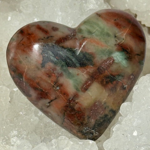 Green emerald powerfully influences the heart chakra , opening it to compassion, harmony, and emotional healing. The natural addition of bixbite to its matrix intensifies this energy, infusing it with a vibrant, almost fiery force. This rare duo connects the wisdom of the heart with the willpower of inner fire.