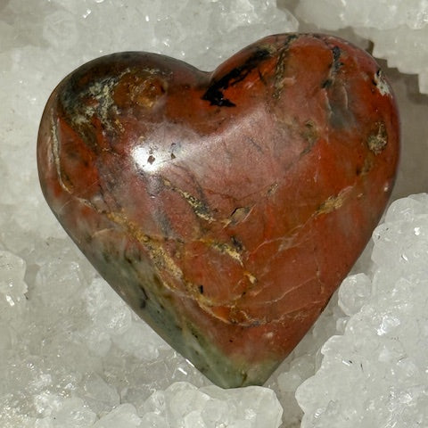 Green emerald powerfully influences the heart chakra , opening it to compassion, harmony, and emotional healing. The natural addition of bixbite to its matrix intensifies this energy, infusing it with a vibrant, almost fiery force. This rare duo connects the wisdom of the heart with the willpower of inner fire.