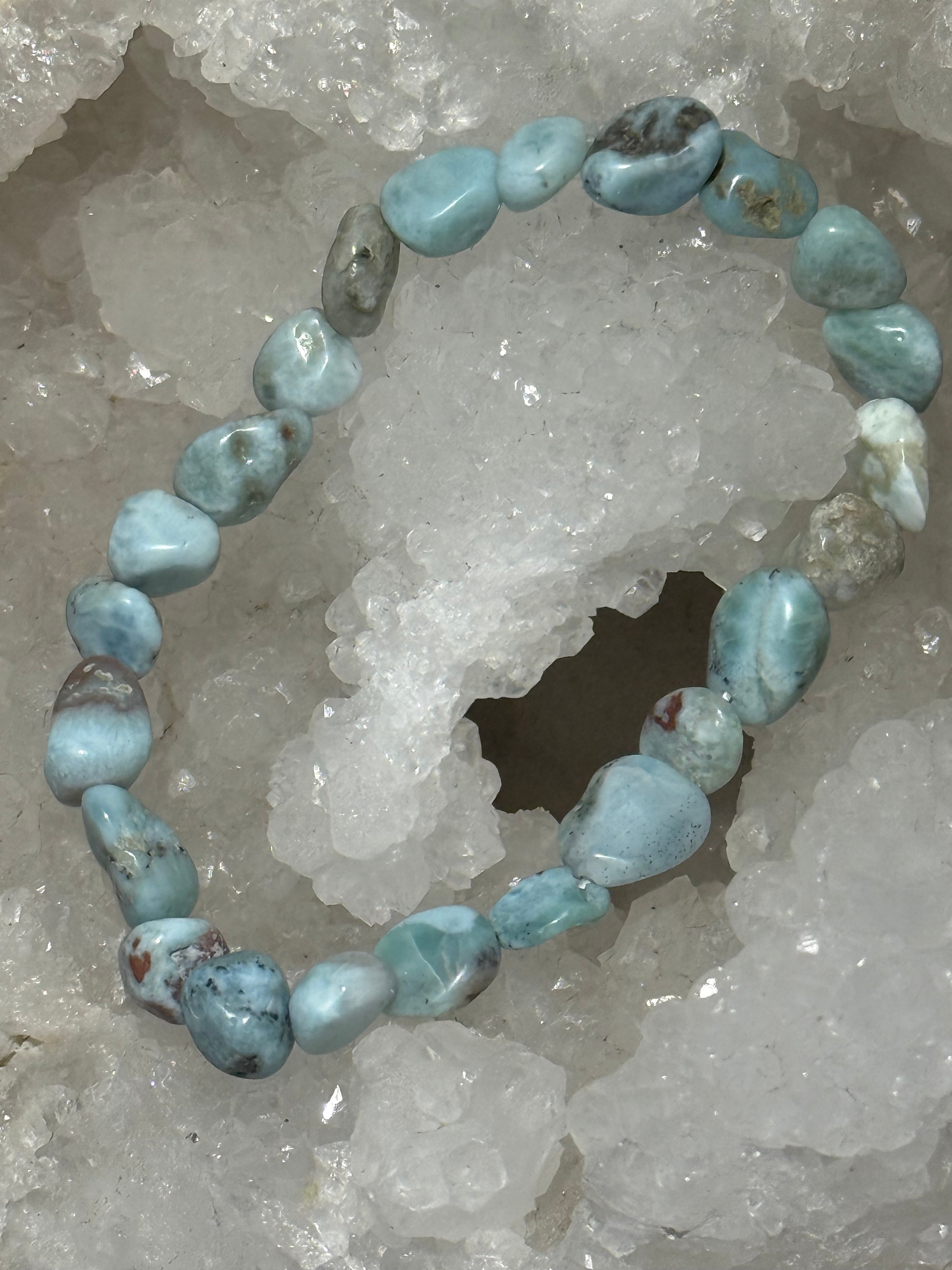 To fully benefit from its properties, Larimar can be worn as a pendant or kept in the left pocket, close to the heart. It pairs beautifully with stones such as Clear Quartz, Turquoise, or Chalcedony to amplify its effects. A true ally for well-being, Larimar gently supports personal growth, fostering inner peace and the full realization of the self.