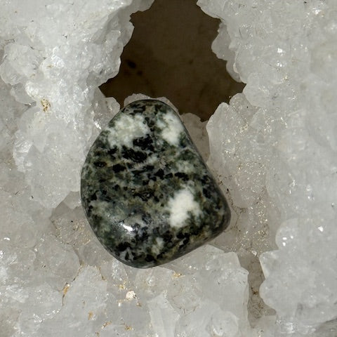 Preseli Bluestone, also known as speckled dolerite or Preseli Bluestone , is a volcanic rock with blue-grey and green hues, emitting a warm, stable, and deeply spiritual energy. Quarried from the sacred hills of Wales , it is world-renowned for its use in the construction of the inner ring of the megalithic monument Stonehenge .