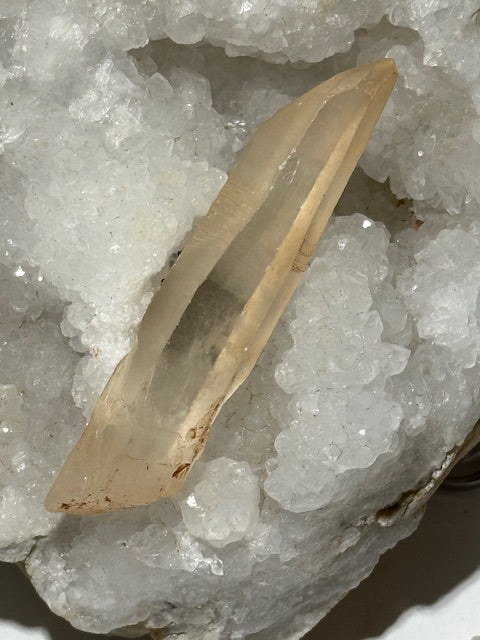 Tangerine Lemurian quartz is a vibrant, energizing crystal with a warm, luminous hue ranging from soft orange to coppery red. Its distinctive color results from iron oxide deposits formed during the later stages of its growth, giving this quartz a unique energetic signature. It combines the ancient wisdom of Lemurian crystals with a joyful, passionate, and transformative energy.