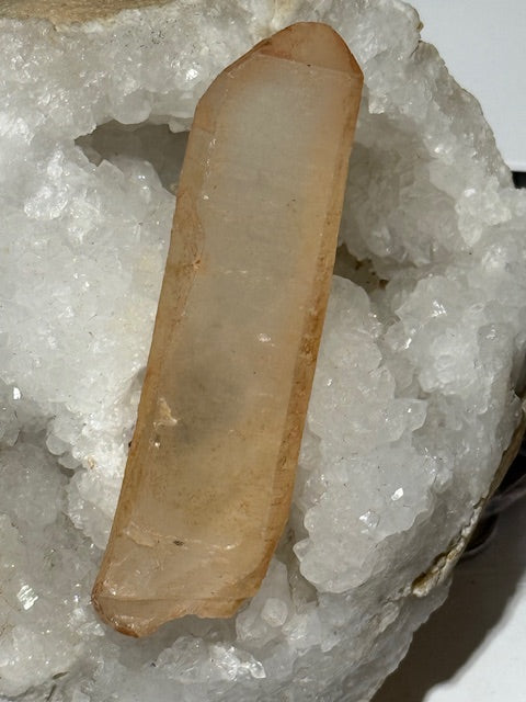 Tangerine Lemurian quartz is a vibrant, energizing crystal with a warm, luminous hue ranging from soft orange to coppery red. Its distinctive color results from iron oxide deposits formed during the later stages of its growth, giving this quartz a unique energetic signature. It combines the ancient wisdom of Lemurian crystals with a joyful, passionate, and transformative energy.