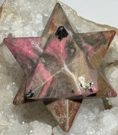 In this unique version, the star is carved from Yukon rhodonite , a rare stone from Northern Canada. Its gentle yet profound vibration works on the heart chakra, promoting forgiveness, emotional release, and healing of emotional wounds. It also provides a strong sense of grounding, helping you stay centered amidst inner turmoil.