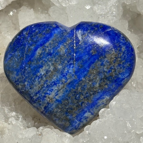 Symbole de clarté et de connaissance, le lapis-lazuli est une pierre d’une profonde vibration spirituelle, associée à la vérité intérieure, à la communication authentique et à la sérénité de l’esprit. Son bleu intense, parfois parsemé d’éclats dorés de pyrite, évoque la voûte céleste et rappelle la quête d’harmonie entre le mental et l’âme.