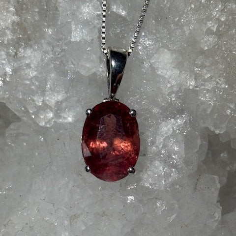 Pendentif Rubellite Foncée (Tourmaline Rouge)(Monture Argent)