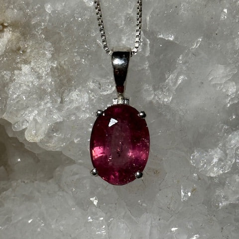 Pendentif Rubellite Foncée(Tourmaline Rouge)(Monture Argent)